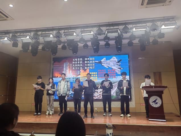 朗诵会分线上和线下两个环节,21个小组经过抽签登台表演,其他小组线上提交作品参赛。现场同学们围绕“歌唱祖国”“弘扬工大精神”和“反映新时代伟大变革”等主题,饱含深情歌唱对祖国的无限热爱与崇高敬意,抒发《航天逐梦》《翱翔》《星辰大海》的理想,礼赞《盛世华章》《民族团结永不息》《新思想引领中国梦》的成就,诉说《乡村与祖国的交响》《大山的故事》,表达《以青春之我·创造青春之中国》的万丈豪情。同学们声情并茂的朗诵、真诚投入的表演,配合精心准备的视频、背景、画外音,赢得了现场观众的阵阵掌声。