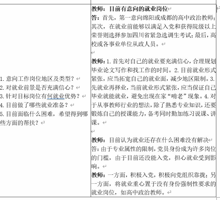 研职有方,岗位“精准推”。毕业生和帮扶教师座谈结束后,辅导员收集了每个学生的求职意向,发挥“宣传员”作用,采取“一人一策”,并建立微信群,依托全媒体平台,及时筛选、整合“国家24365大学生就业服务平台”、“国产色情