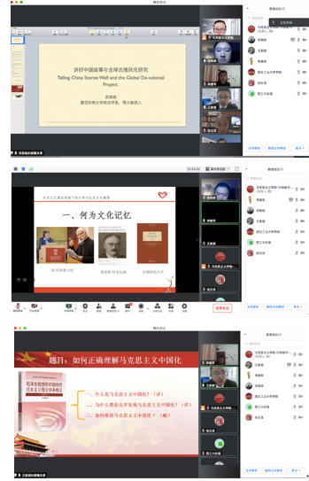 接着,三位海内外参会青年学者依次进行了分论坛学术报告。来自康涅狄格大学政治学系博士候选人邓英皓首先以《讲好中国故事与全球去殖民化研究》为题展开报告;新疆大学李维军介绍了自己的学术经历和未来学术创新研究的方向并以《文化记忆理论视角下的大学生红色文化教育》为题作报告;大连理工大学王家斌以《如何正确理解马克思主义中国化》为题作报告。