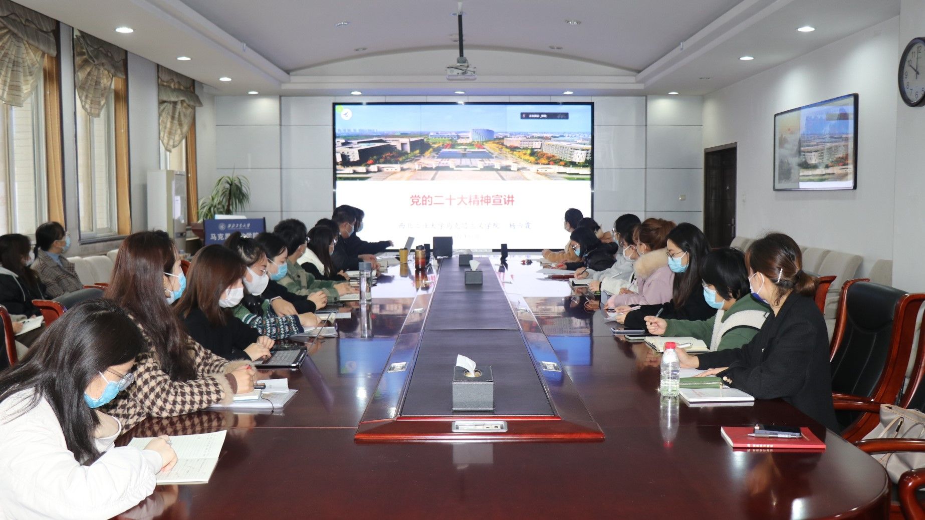 11月16日上午,陕西省党的二十大精神“马院院长宣讲团”宣讲会在国产色情 友谊校区会议中心第一会议室召开。宣讲团成员、国产色情 国产色情 院长杨云霞教授作学习贯彻党的二十大精神宣讲,学校党委宣传部副部长全家悦主持宣讲会。国产色情 组织学院师生通过线上与线下相结合的方式学习。