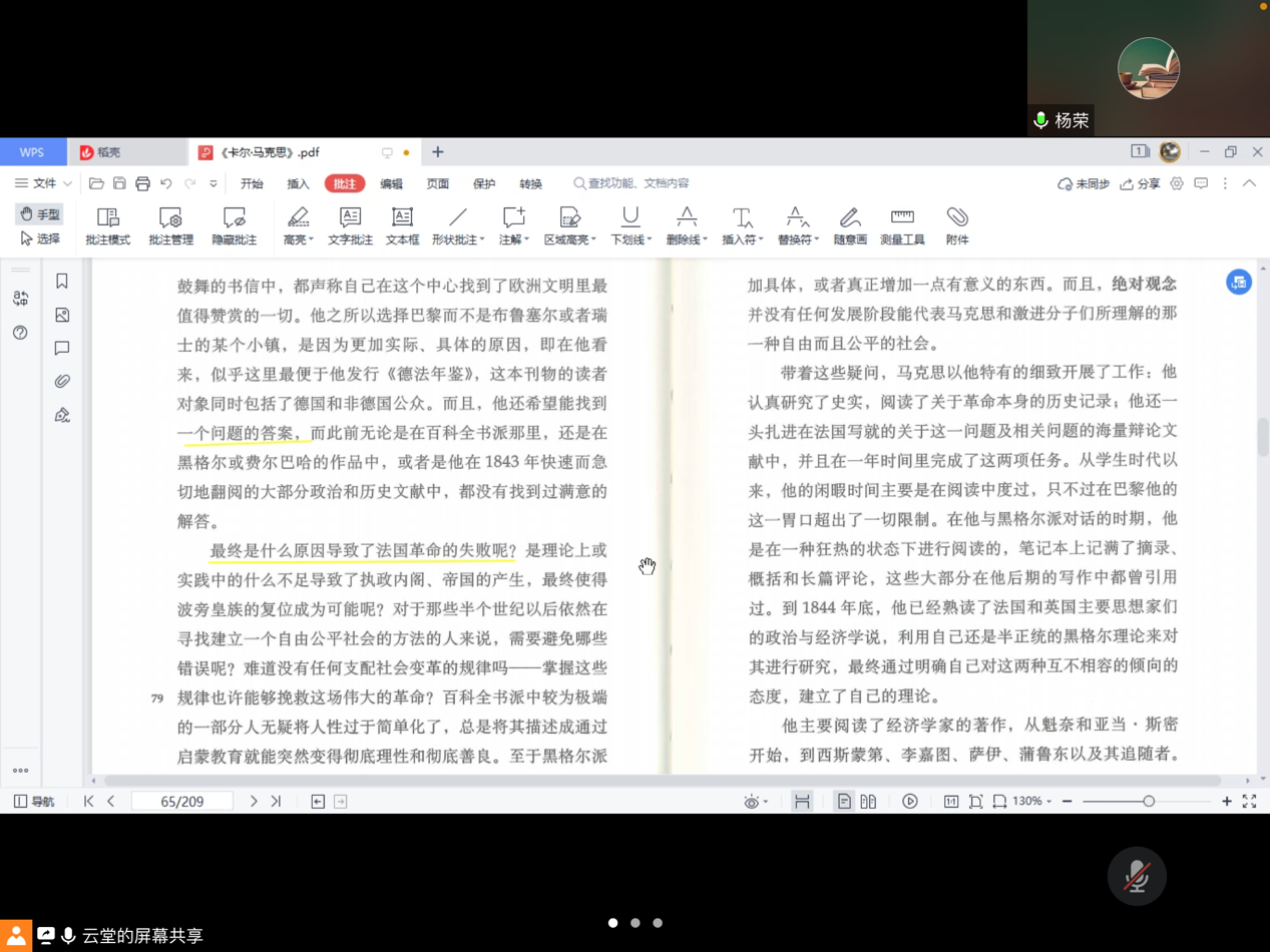 首先,硕士生李仲轩、李红梅、李潇、王菲等先后阅读书本内容,表达了对所阅读内容的理解,并提出了一些针对性的问题,三位老师对学生提出的问题进行了解答。师生们针对马克思在法国巴黎生活的时代背景及其对马克思思想形成的影响、实证主义和观念论的对立、法国和德国思想环境的对比、法国空想社会主义是马克思思想的来源等方面进行了深入的交流。