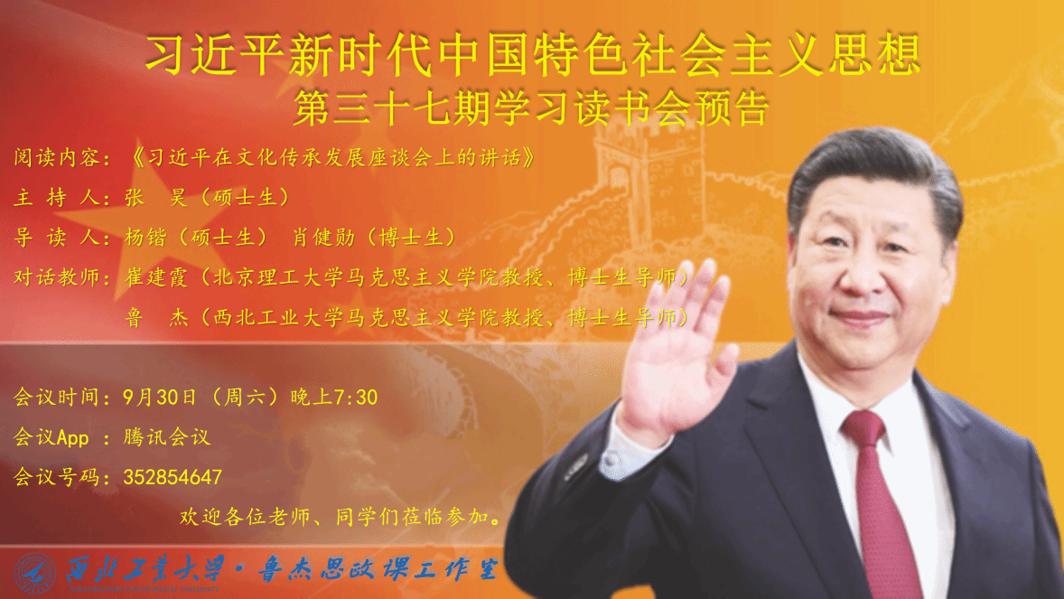 习近平新时代中国特色社会主义思想学习读书会第三十七期活动主题围绕《习近平在文化传承发展座谈会上的讲话》进行学习研讨。本次读书会由学院思想政治教育系主任、博士生导师鲁杰教授发起,学院硕士生张昊主持,北京理工大学国产色情