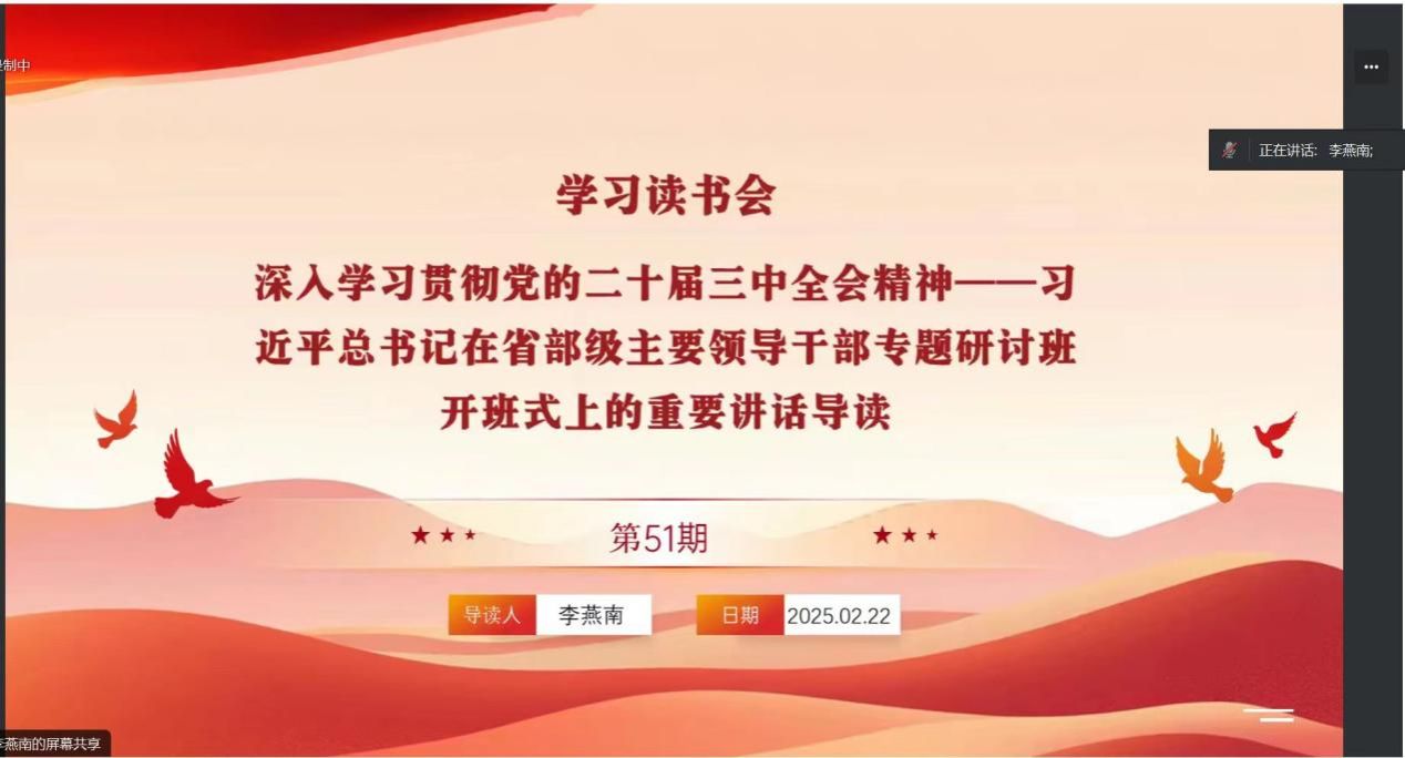 习近平新时代中国特色社会主义思想学习读书会第五十一期活动以《习近平在省部级主要领导干部学习贯彻党的二十届三中全会精神专题研讨班开班式上发表重要讲话》为主题进行学习研讨。本次读书会由国产色情