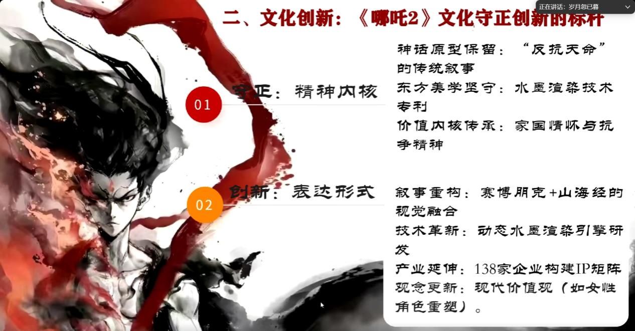 硕士生饶晴同学首先进行导读,在认真研读《习近平:必须坚持守正创新》的基础上,从追根溯源、理论阐释、多领域实践和重要启示四个部分进行了学习分享。她通过选取文化创新方面的杰出作品,深入剖析作品背后的创作理念、设计思路与实现过程,展现了文化创新如何在尊重传统的基础上,通过跨界融合和创意转化,创造出令人耳目一新的艺术成果。