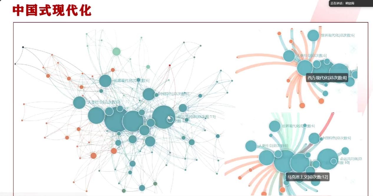 硕士生梁欣雨同学,从中国式现代化的探索历程、中国式现代化的丰富内涵与中国式现代化的世界意义三个方面对文本内容进行了全面系统的解读。同时,她运用知网可视化分析对中国式现代化相关论文与选题进行了分析,为大家展示了文献收集学习的方法。