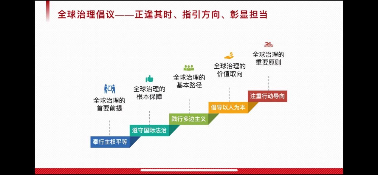 接着,硕士生汪超然同学主要从“全球发展倡议”进行了深入浅出地解读。从全球发展倡议的提出到全球发展倡议的核心理念以及中国的贡献与行动案例。习近平总书记2021年9月首次在联合国大会上提出全球发展倡议,呼吁将发展置于全球宏观政策突出位置,推动全球发展迈向新阶段。全球发展倡议秉持发展优先、以人民为中心、普惠包容、创新驱动、人与自然和谐共生、行动导向六大原则,聚焦减贫、粮食安全、绿色发展等关键领域,旨在落实联合国2030年可持续发展议程,构建全球发展命运共同体。中国以“硬联通”与“自主能力建设”相结合的路径,强化“发展权”优先级,为全球发展提供新选项。这一开放的公共产品,呼吁各国携手参与,不让任何国家掉队,共绘共同繁荣的发展蓝图。