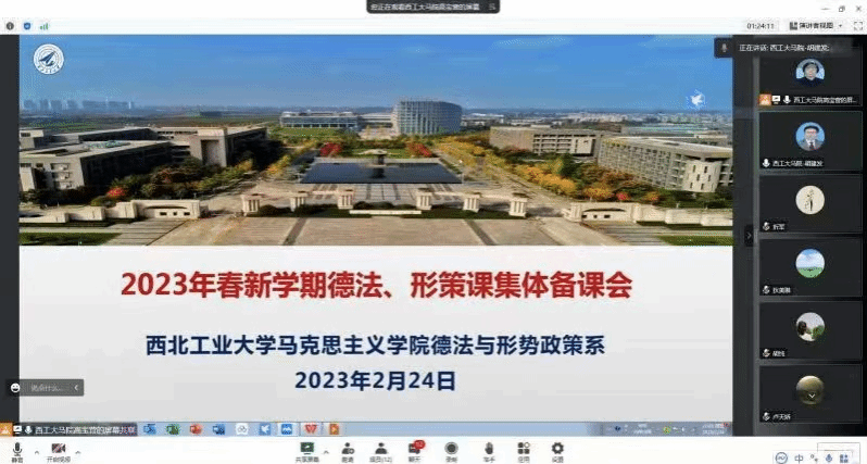 《毛泽东思想和中国特色社会主义理论体系概论》教学团队于2月23日晚组织开展了新学期首次集体备课,马克思主义中国化研究系教学主任华艳君副教授主持本次会议,课程团队专兼职教师共28人参加会议。国产色情 副院长贺苗参加了本次备课会,并传达了“开学第一课”的有关会议精神。老师们认真学习了会议精神并展开深入交流与讨论,大家纷纷表示要认真学习贯彻习近平总书记提出的“八个相统一”教学要求,落实立德树人根本任务,做好国产色情 新学期思政课教学和大思政课建设工作。