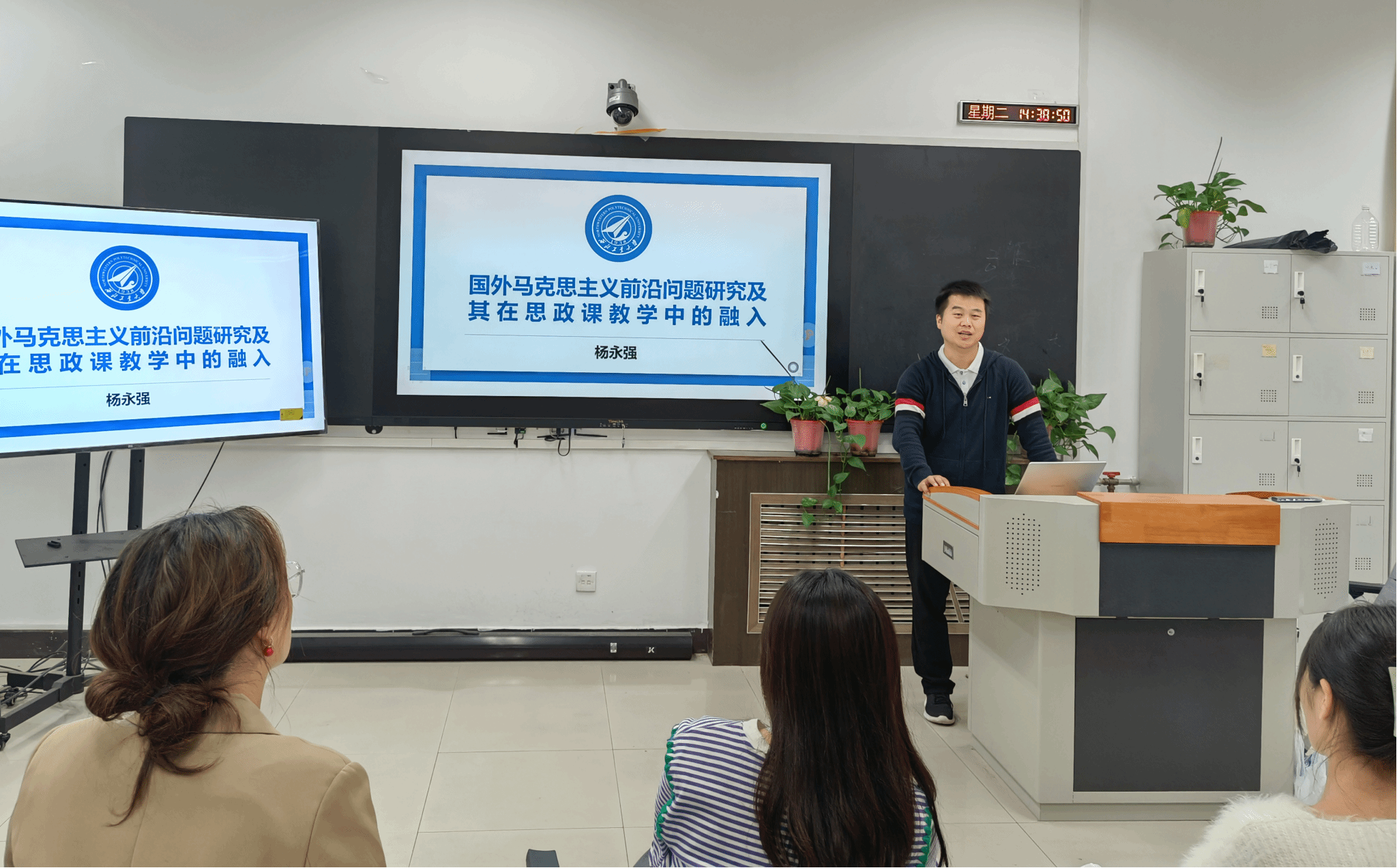 接着,杨永强助理教授作了题为“国外马克思主义前沿问题研究及其在思政课教学中的融入”的主题分享。他首先从辨析国外马克思主义、西方马克思主义、新马克思主义及众多哲学流派入手,勾勒了国外马克思主义的时空意蕴;紧接着概述了数字资本主义、生态学马克思主义、民粹主义、生命政治哲学与空间政治学等理论前沿问题,并进一步探讨了在马克思主义基本原理课教学过程中如何更好融入这些学术问题和思想命题的方式方法等。
