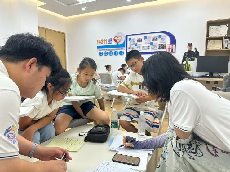 活动期间,实践队积极拓展支教内涵,注重综合素质培养。8月5日,队员们携手西南医科大学“赤心青年服务队”,共同走进“心沐学堂·建哥说法”法治课堂。在北川羌族自治县公安局张建警官的专业引领下,两校学子为孩子们带来一堂别开生面的法治安全教育课。课程聚焦未成年人保护、网络安全、校园欺凌防范等热点话题,结合真实案例与互动问答,深入浅出地讲解法律知识,有效提升了孩子们的法律意识和自我保护能力,为他们的健康成长筑起坚实防线。