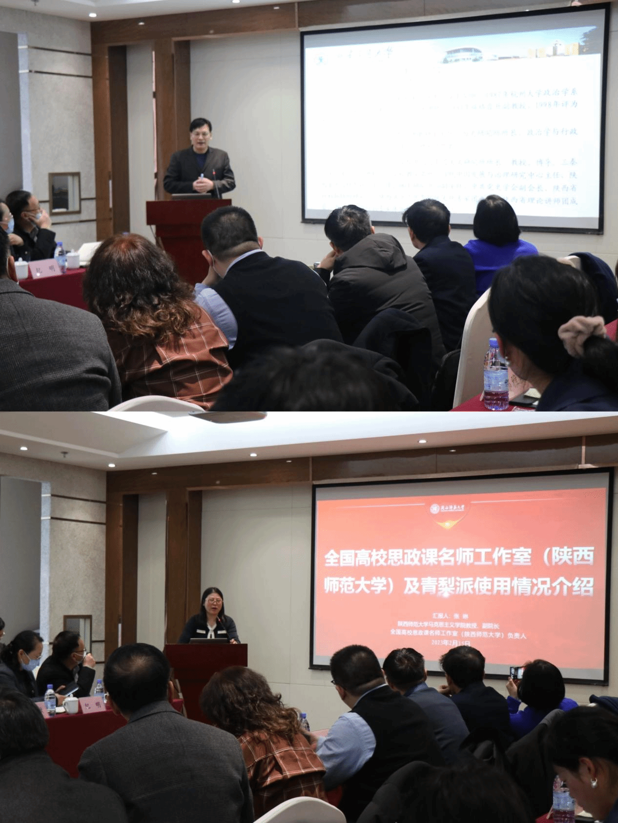 会上,“全国高校思政课名师工作室”负责人西安交通大学陆卫明教授、陕西师范大学张琳教授分别就工作室的方法维度、目标维度、策略维度作专题辅导。陆卫明表示,新时代思政课要紧密结合当代学生的特点,要坚持“学生在哪里,思政课就在哪里”,开展形式多样、内容丰富的思政课教学活动,用好新媒体平台,打造线上线下一流思政课程。张琳表示,作为师范类院校,工作室聚焦师范类高校“概论课”教师培养打造具有学校特色的名师团队,充分发挥师范类高校优势,凸显区域特色、专业特色、时代特色、平台特色。