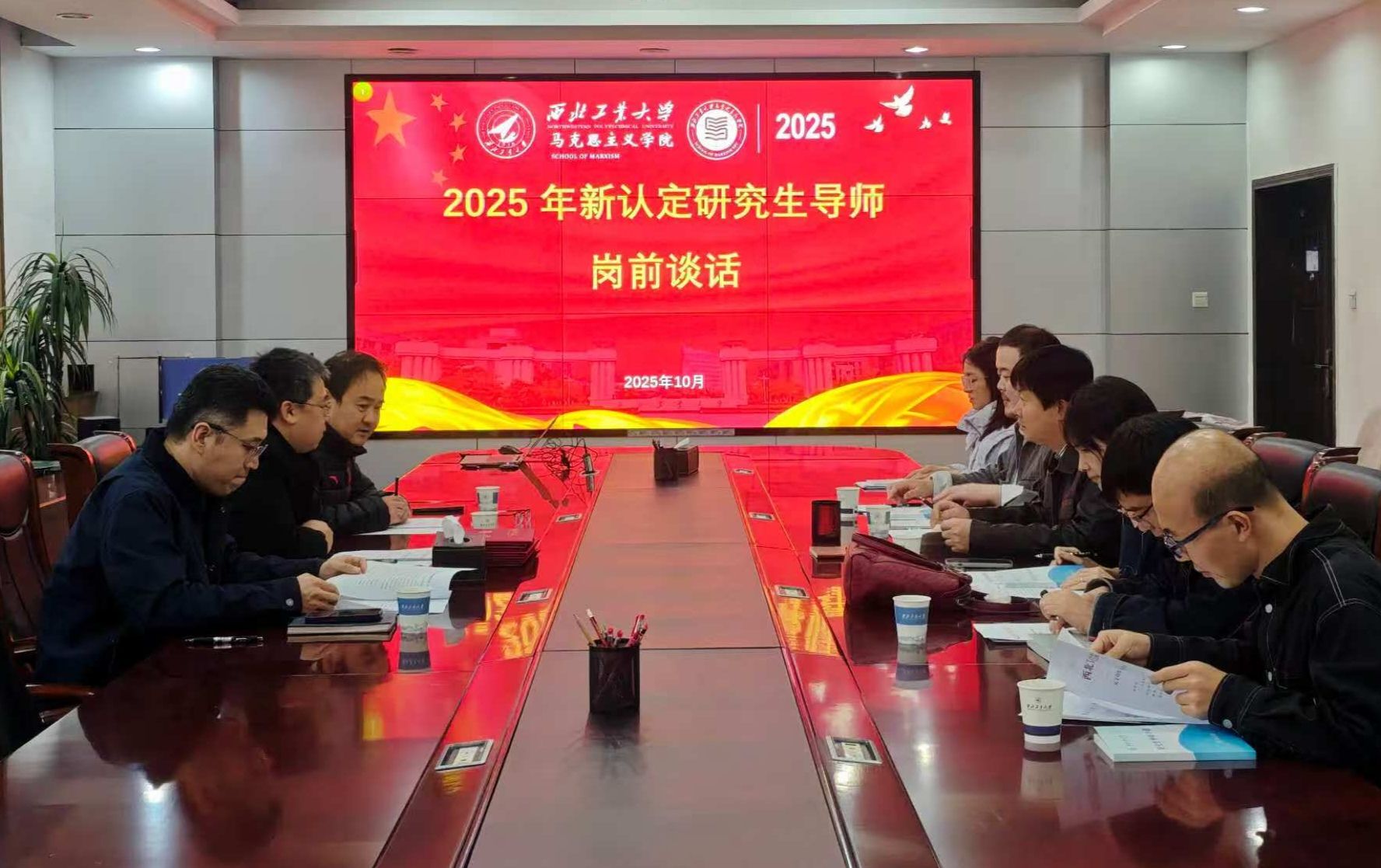 2025年10月20日下午,在208会议室开展导师岗前谈话工作会议。学院党委书记王彦革、党委副书记耿云辉和新认定导师参加会议。会议由副院长张云龙主持。