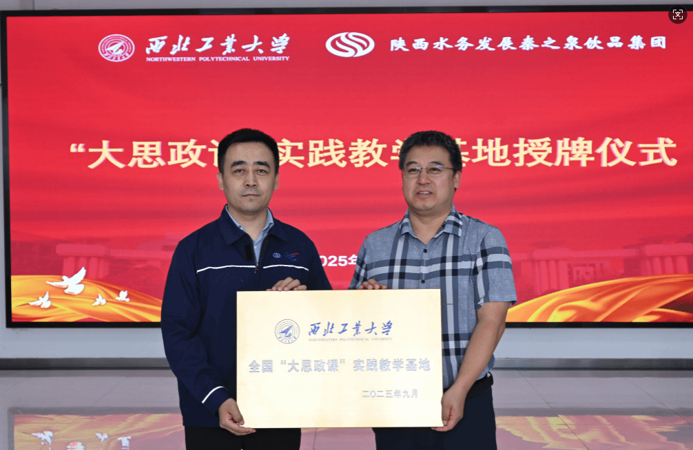 王彦革为陕西水务发展秦之泉饮品集团授“大思政课”实践教学基地牌。