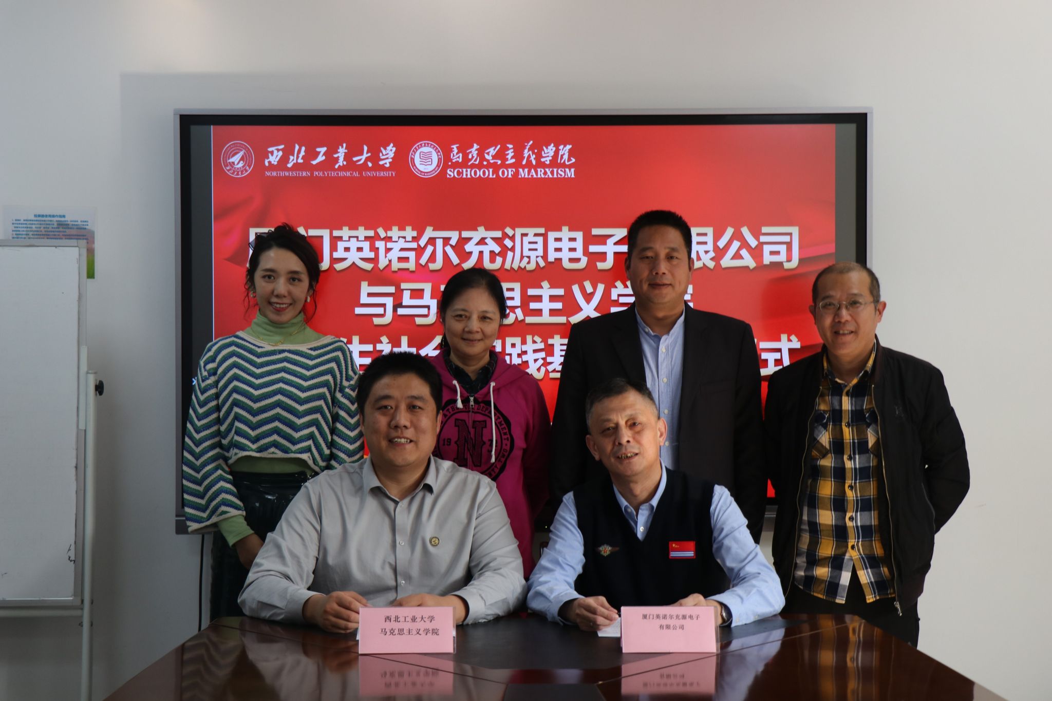 大学生社会实践基地签约仪式在友谊校区勇字楼701举行,厦门英诺尔电子科技股份有限公司代表、校友张建军,校友沈飚、谢小钢来学院调研并签约,西工大校友会副秘书长可方玲、国产色情
