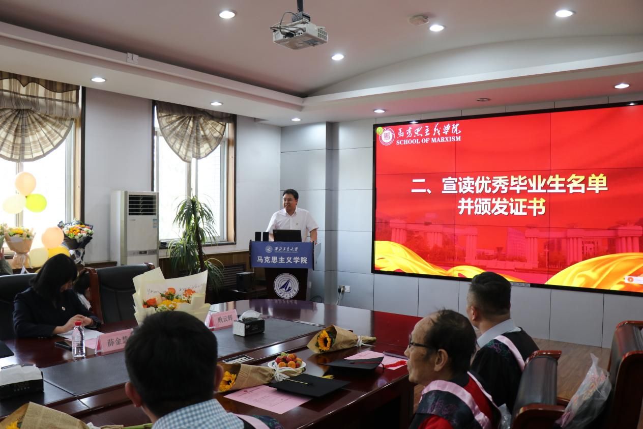 2022届研究生毕业典礼在长安校区学院楼208会议室举行。学院领导班子、研究生导师代表、毕业班辅导员、班主任以及2022届毕业生齐聚一堂,共同迎接毕业生人生中极具意义的高光时刻。本次典礼由学院党委副书记耿云辉主持。