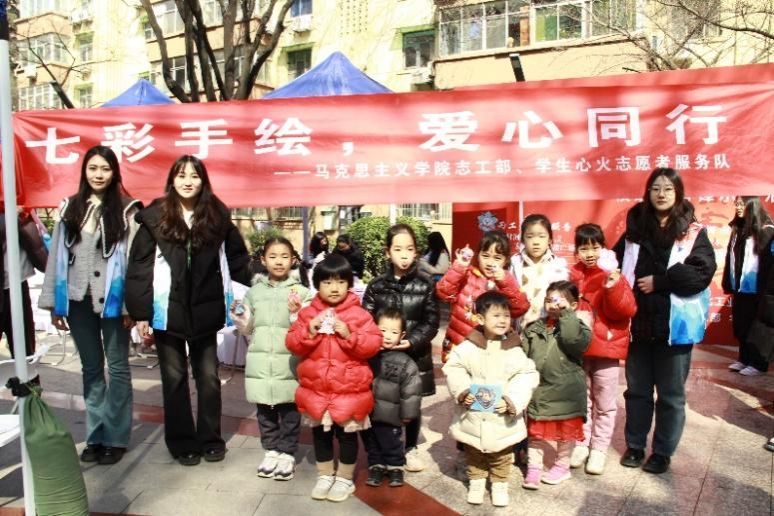 志工部与学生心火志愿者服务队在友谊校区角楼广场组织开展了“七彩手绘,爱心同行”志愿活动,学院团委副书记丁嘉欣、硕士研究生刘丽萍、秦歌、王家乐等同学一起参与了活动。