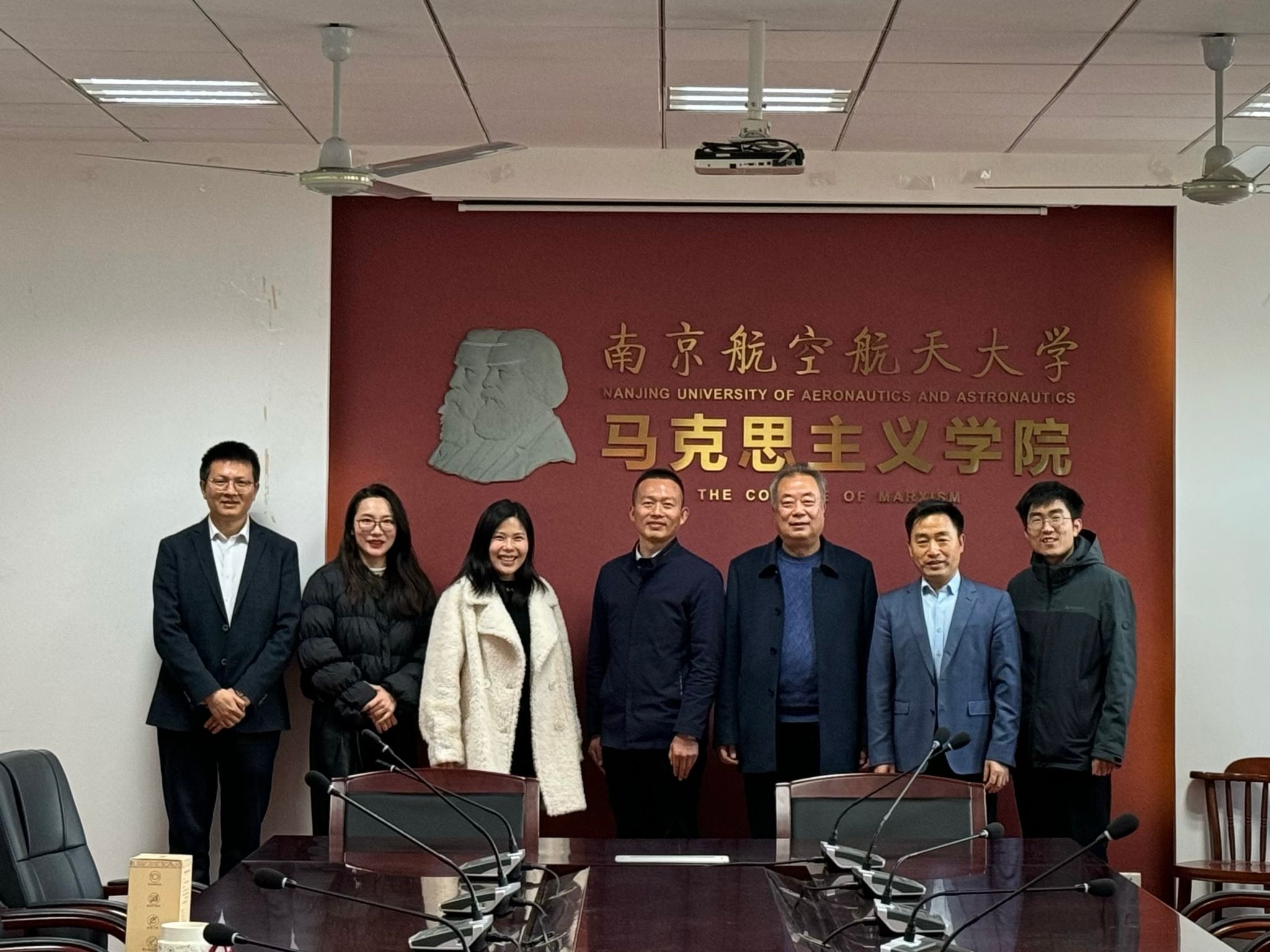 为进一步加强校际交流,进一步推动思政课改革创新,2024年3月8日,国产色情 国产色情 党委书记蒲传新与蚌埠医科大学马院申正付教授一行前往南京航空航天大学马院学习调研。南航团委副书记王洋,马院党委书记何畏、院长王智、党委副书记阙愚、副院长陈红桂等参加了座谈。座谈会由王智主持。