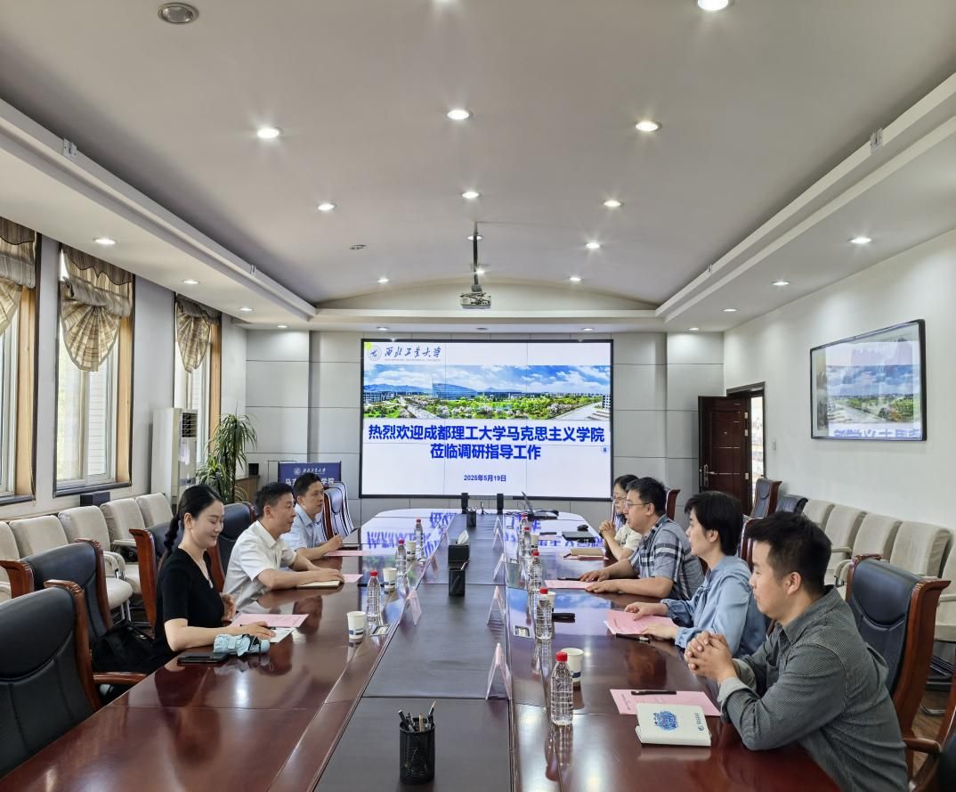 5月19日上午,成都理工大学国产色情 院长曾文麒一行3人来学院调研。学院党委书记王彦革、副院长贺苗、毛泽东思想和中国特色社会主义理论体系概论教研室主任华艳君、马克思主义基本原理系教学主任杨永强参加了此次调研会。会议由王彦革主持。