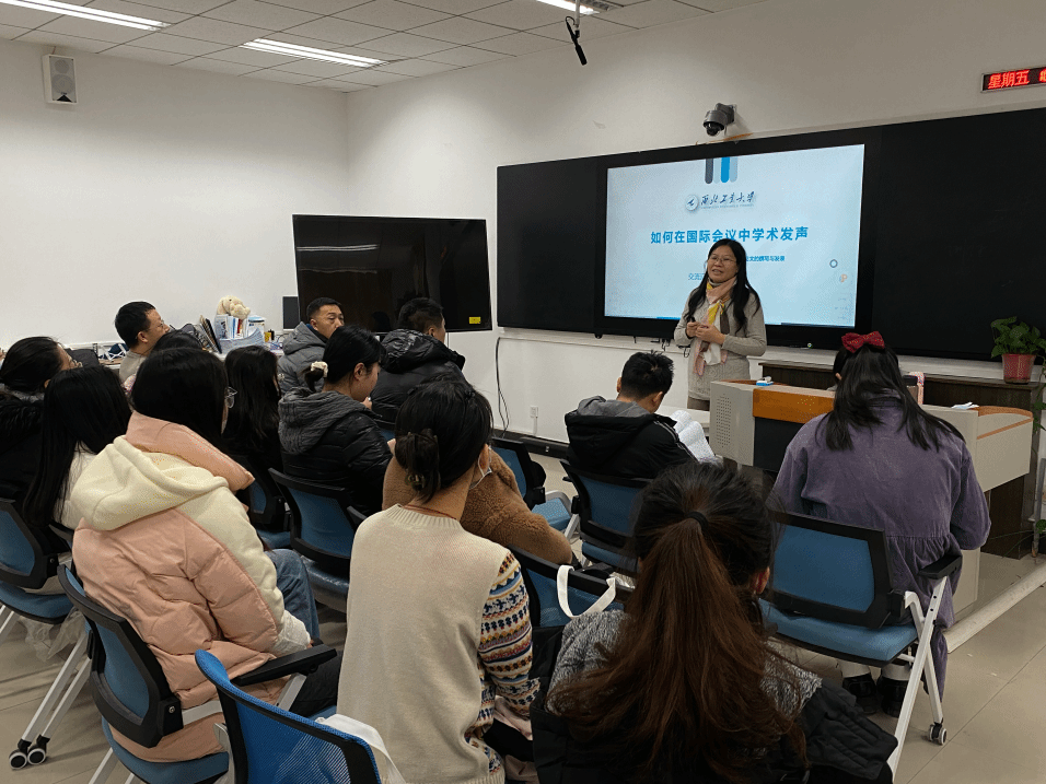 宫老师以《新生代科技人才流动影响因素分析——基于西安等12座城市的相关研究》为切入点,分享了撰写国际会议论文的技巧与要点。她深入解读了如何查找外文文献、撰写高质量论文,以及如何寻找国际会议的机会和解锁途径,为在场师生提供了宝贵的经验分享与指导。