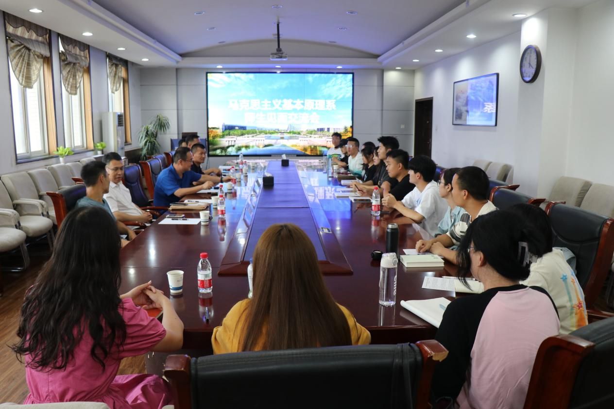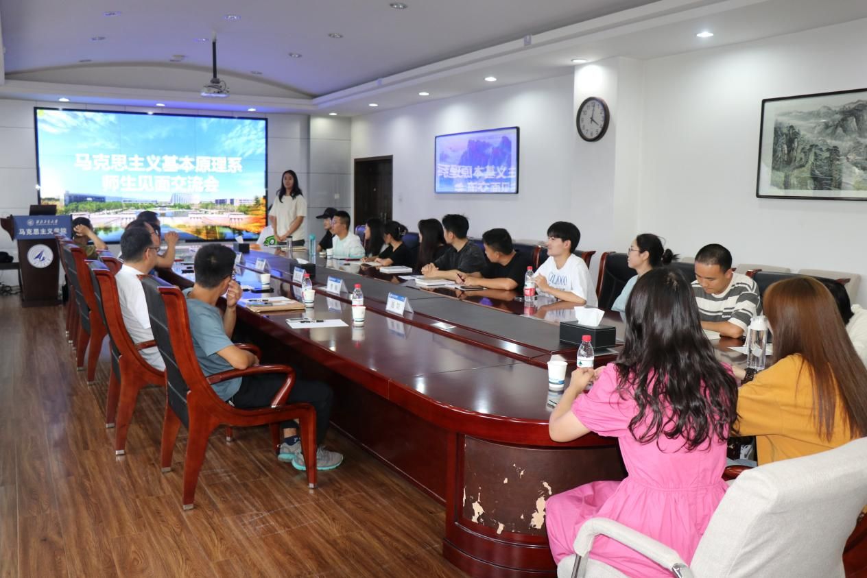 马克思主义基本原理系新生见面交流会在学院楼208举行,马原理专业导师张云龙、曹瑜、聂阳、马军、吴小安参加,会议由系主任杨荣主持。