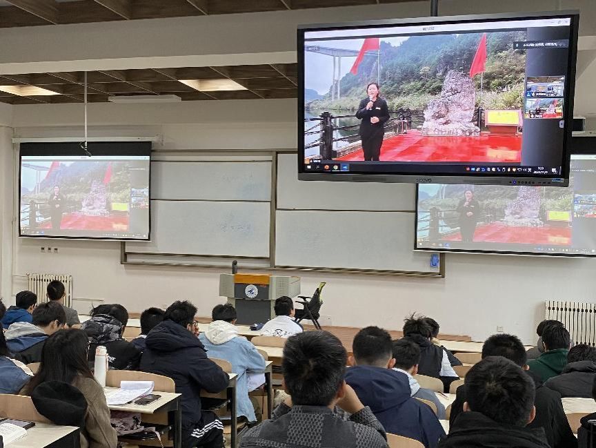 党委书记蒲传新副教授与贵州省遵义市余庆县委党校吴德燕、李世梅两位老师共同开启课堂直播连线,为同学们带来了一场鲜活生动的“社会主义文化强国”的红色教育思政课。