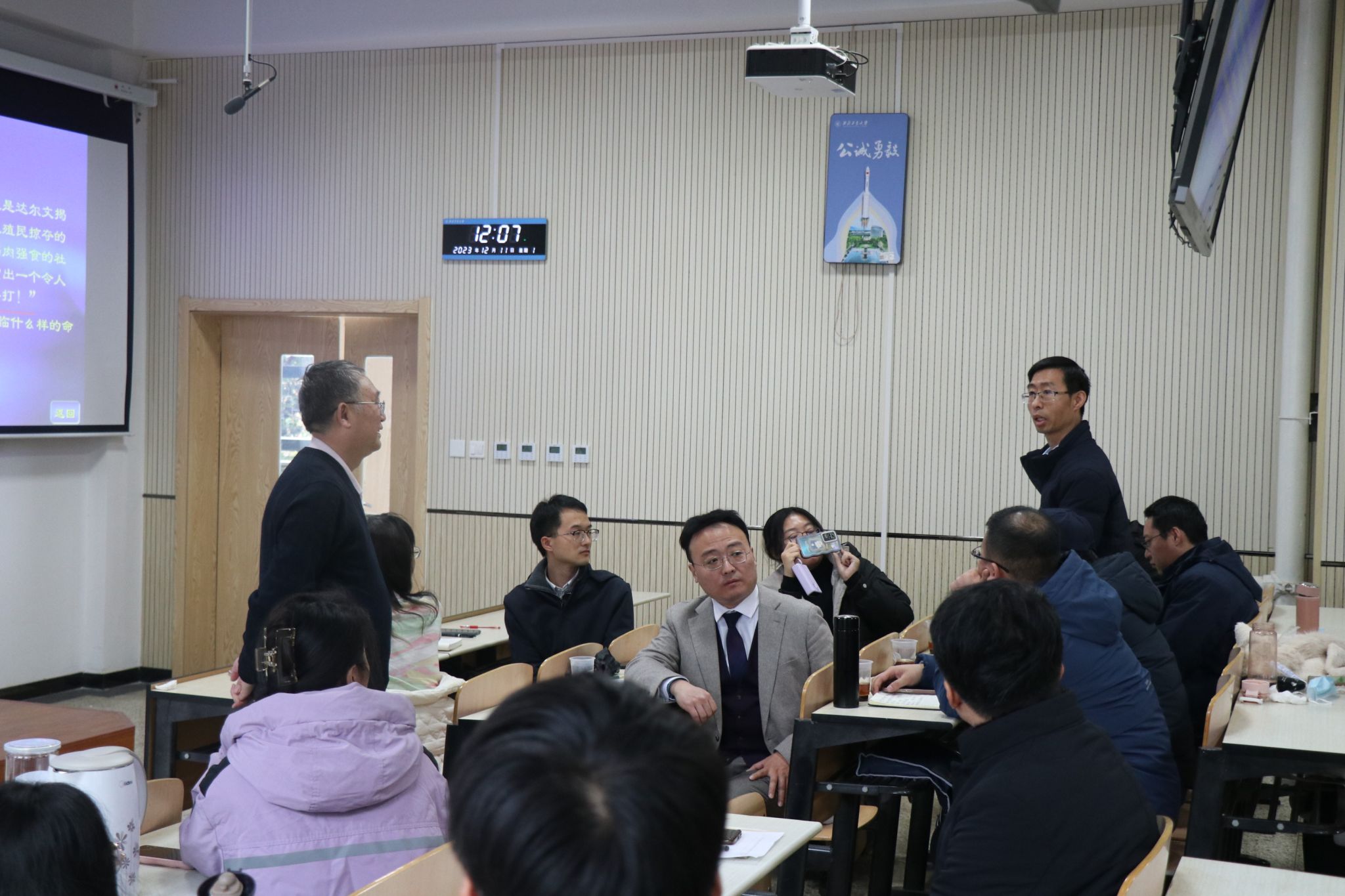 师生进行了中国近现代史纲要课程专题式示范教学,并就如何提升思政课教学质量、提高国产色情