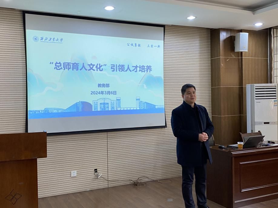 首先,王海鹏部长强调了开展本次宣讲的重要意义。他表示,深刻理解“总师育人文化”内涵,坚持用“总师育人文化”引领人才培养,造就大批“总师”型人才,是学校人才培养的新使命与新挑战。要充分开展宣贯及研讨,汇聚优质育人资源,进一步加强教改探索与实践,在“总师”型人才培养方面加大投入力度。鼓励学院教师肩负起使命担当,奋发有为,锚定“127”目标,为续写新时代人才培养的“西工大现象”文化内核贡献力量。