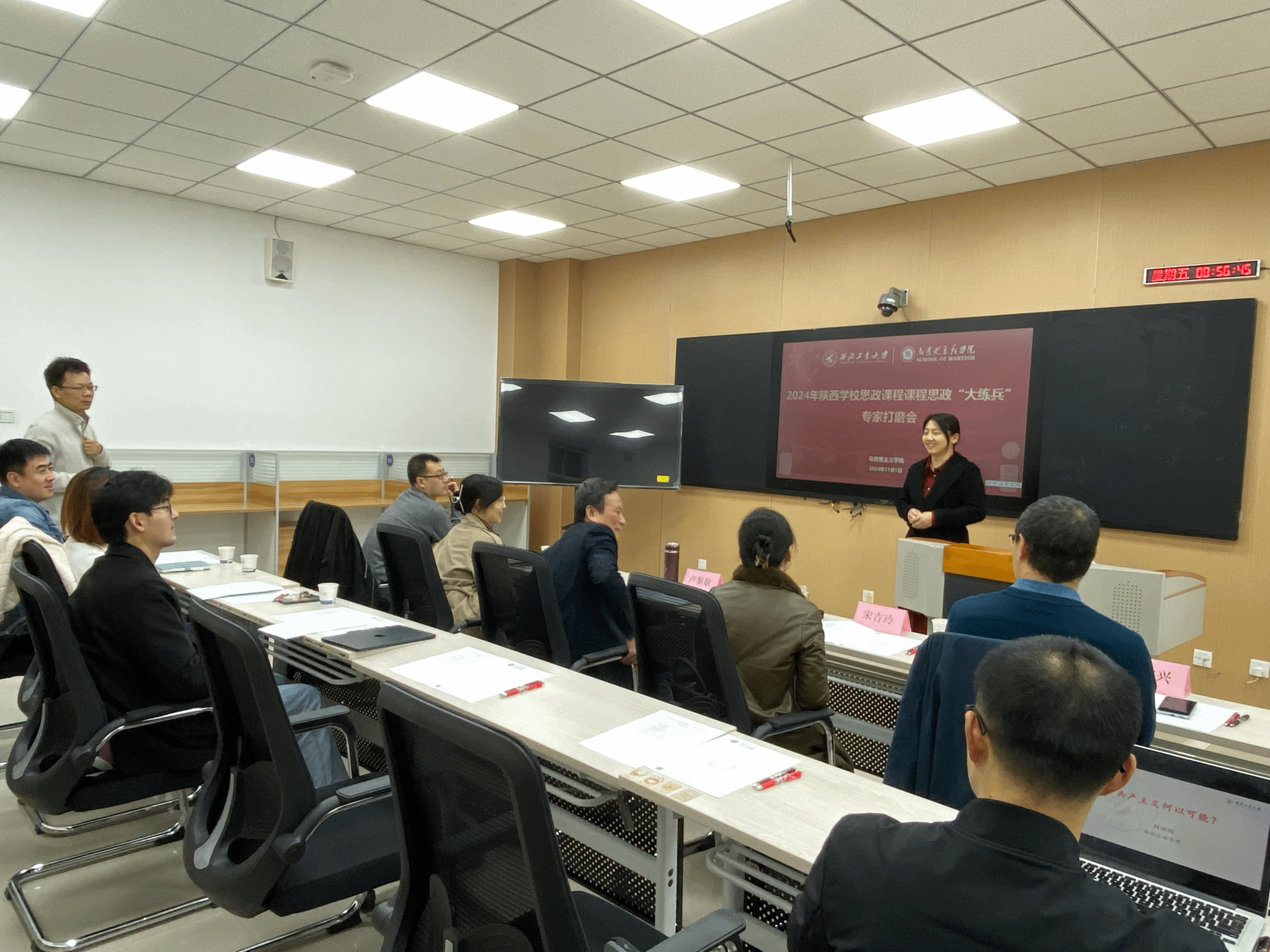举办了2024年度陕西高校思政课教师“大练兵”专家打磨会。会议邀请到卢黎歌、宋吉玲、李婷、赵常兴、赵沛等思政课教学名师、专家对参赛选手进行指导。